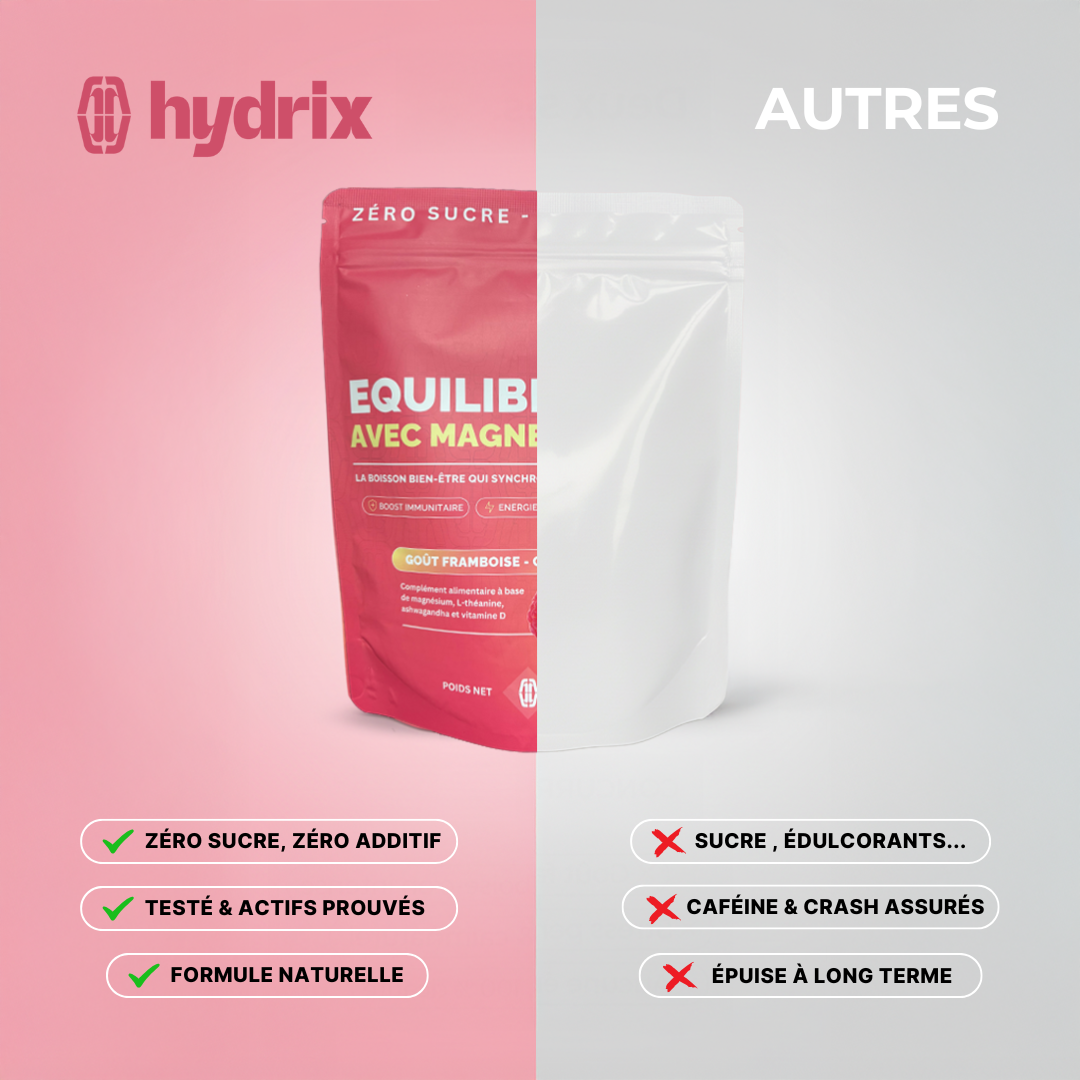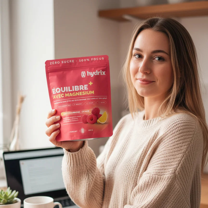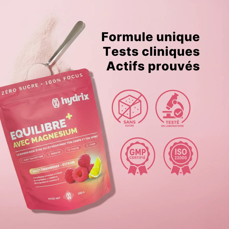 Oui. Équilibre+ est sans caféine : tu peux le combiner à ton café habituel, ou l’utiliser comme alternative plus douce et sans crash.